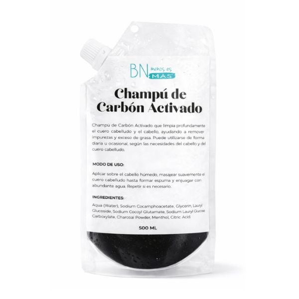 Purifica y renueva tu cabello con el Champú de Carbón Activado (500 ml). Formulado para ofrecer una limpieza profunda y desintoxicante, es la solución perfecta para revitalizar cueros cabelludos asfixiados por la contaminación o el exceso de sebo.